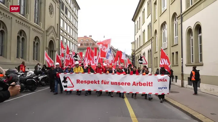 - Fast 1000 Baubeschäftigte haben in Bern für einen neuen Gesamtarbeitsvertrag und gegen überlange Arbeitszeiten demonstriert.