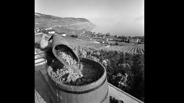 Reportage, 05.10.1950. Zwei Kinder gehen zur Weinlese.