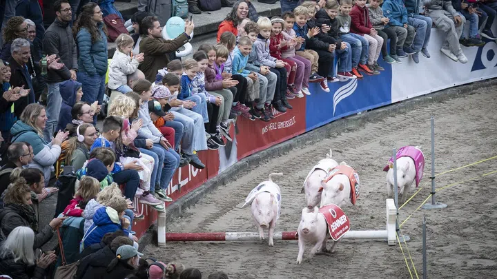 Säulirennen sind an grossen Messen wie der Olma oder LUGA ein Publikumsmagnet. In den letzten Jahren wurde aus dem Messe-Spektakel jedoch ein Fall für die Justiz. Kantonale Behörden, die Geldspielaufsicht und sogar das Bundesgericht befassten sich mit den Schweinerennen.