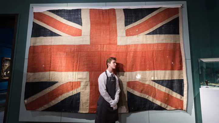 1805 rettete Admiral Lord Nelson in der Schlacht von Trafalgar England vor Napoleon. Eine britische Flagge, die damals mitten in der Seeschlacht flatterte, soll nun vom Auktionshaus Christie’s versteigert werden. Doch die ersten Gebote aus dem Ausland haben in London Alarm ausgelöst.
