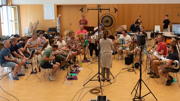 Bei den Aufnahmen für das Album war der Komponist selbst anwesend. Die Zusammenarbeit sei sehr inspirierend gewesen, sagt Véronique Gyger-Pitteloud: «Auch für die Bläserinnen und Bläser war es sehr spannend, dass Etienne Crausaz bei den Aufnahmen dabei war».