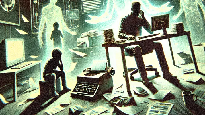 Was genau klemmt bei F.? Darüber frei zu sprechen, sich vielleicht sogar eine professionelle Beratung zu genehmigen, kommt für F. nicht in Frage. Stattdessen: Hinwendung zur KI als preiswertem Gesprächspartner und Gehilfen – um ein in der Tat ganz schön happiges Pensum zu bewältigen: F. muss bis in zwei Tagen ein Hörspiel geschrieben haben, einen schwierigen Brief an den Klassenlehrer und die Trauerrede für seine kürzlich verstorbene Schwester Henni.