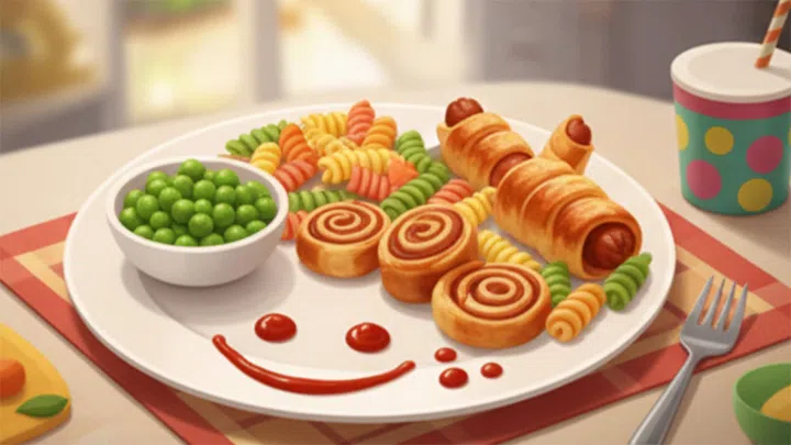 Reto zeigt, wie aus einem einfachen Würstchen im Teig ein Teller entsteht, der fast schon eine kleine Geschichte erzählt. Dazu bunte Pasta und eine Portion Erbsen, schlicht angerichtet und ideal für Tage, an denen es unkompliziert, aber trotzdem liebevoll gekocht sein soll.