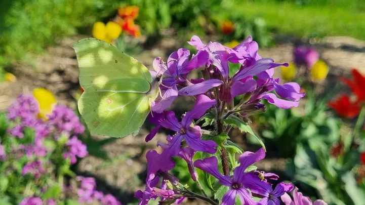 Zitronenfalter überwintern beispielsweise in den Blättern des Efeus in einer Froststarre. An sonnigen Tagen sind sie aber bereits im Februar wieder unterwegs auf der Suche nach Nektar.