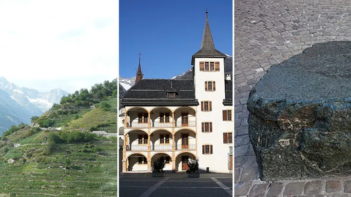 Der höchste Rebberg Europas liegt in der Nachbarsgemeinde von Visp. In Visperterminen. Dort, wo es in der Schweiz am trockensten ist, stehen Rebstöcke bis hinauf auf 1150 Meter. Der Hang ist durchsetzt mit hohen Trockensteinmauern. Sie schaffen so das Terrain für die Rebstöcke. Der Heida-Wein, ein Weisswein, ist begehrt und eine Rarität. Nur dort wächst er. Auf dem höchsten Rebberg Europas.