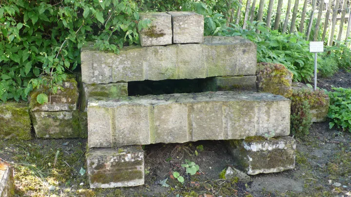 · An schattigem Ort Steinring mit Öffnung bauen und mit Platten abdecken, Laub hineinlegen.