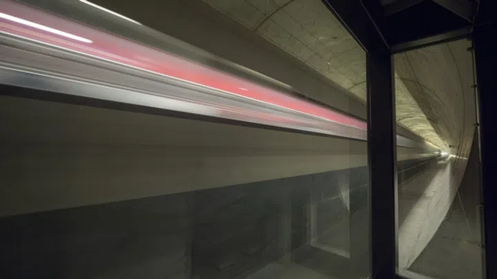 Wie etwas zeigen, das man eigentlich nicht sieht? Der Kanton Uri macht aus einem Neat-Nebenstollen ein Museum, inklusive Fenster in den schwarzen Tunnel. Nur: Auch ein vorbeirasender Zug sieht ziemlich schwarz aus.