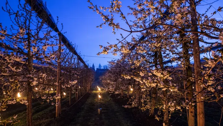 Das nasskalte Wetter ist für Landwirtinnen und Landwirte eine Herausforderung. Am Freitag und Samstag haben sie in einigen Obstanlagen Frostkerzen aufgestellt, um die Temperaturen in den Anlagen zu steigern. Grossflächige Frostschäden wurden keine gemeldet.