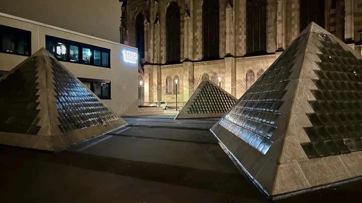 Eine der vier Pyramiden beim Theater ist derzeit abgesperrt, da die Glasbausteine kaputt sind. Im Malsaal des Theaters, der sich gleich unter den Pyramiden befindet, seien wegen der Undichte zwar ein paar Wassertropfen festgestellt worden. Gravierende Schäden habe es aber nicht gegeben.