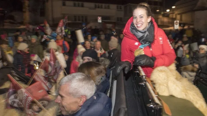 Die Olympiasiegerinnen Michelle Gisin und Denise Feierabend sowie Lena Häcki wurden bejubelt und auch beschenkt.