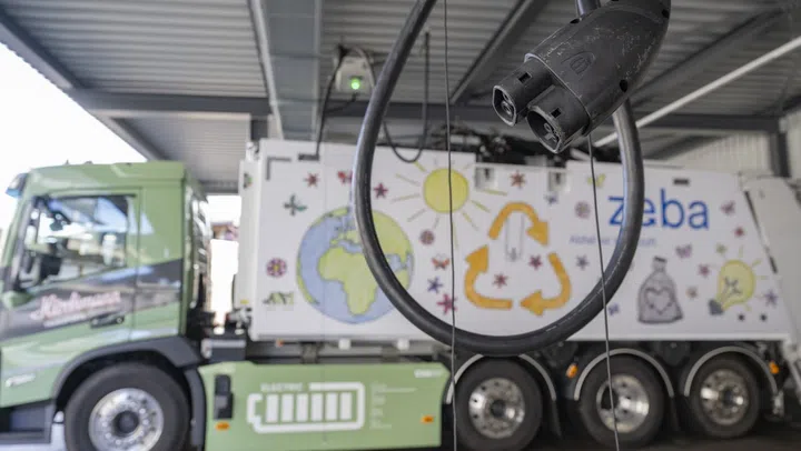Statt mit Diesel werden die Abfalllastwagen in Zug seit diesem Jahr mit Strom betrieben. Dieser stammt aus Sonnen- und Wasserkraft. In einer neuen Ladestation in Baar können bis zu 32 Fahrzeuge geladen werden.