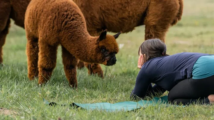 Entschleunigung auf vier Beinen: Eine Yoga-Stunde mit Alpakas.