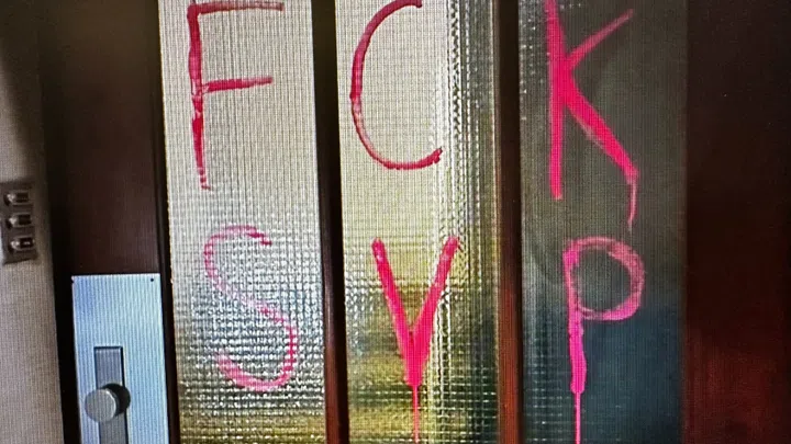 Unbekannte haben in der Stadt Zürich die Eingänge der Wohnhäuser von Exponenten der Partei mit Parolen beschmiert. Die Stadtpolizei Zürich bestätigt eine Anzeige eines Vorfalls.