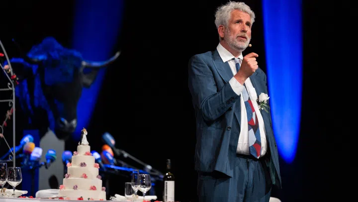 Spasspartout präsentiert den Auftritt von Dirk Stermann an der Preisverleihung in Olten am 4. Mai 2024.