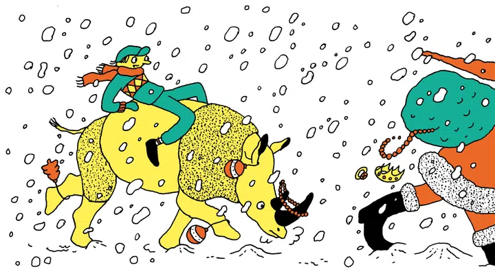 Ein spannendes Weihnachtsabenteuer mit viel Schnee, geheimnisvollen Gästen und einer Belohnung, die alles andere als gewöhnlich ist: ein Nashorn!