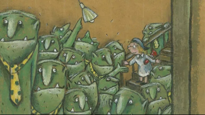 Genau das passiert einem kleinen Mädchen. Und was macht sie? Sie schüttelt den Monstern freundlich die Hand und bietet ihnen Getränke an. Ob das gut kommt?