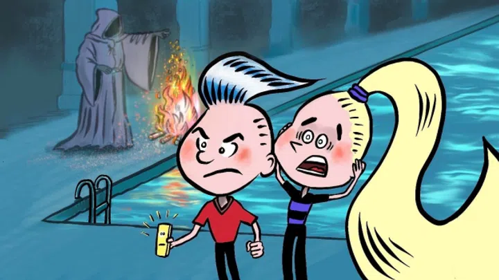 Fabi, Luiz und Sandy Handy sind stolz auf die neuste Attraktion im Hotel Saanenhof: vom luxuriösen Wellnessbad aus hat man direkte Sicht auf eine Keltengrabstätte. Ein wahrer Touristenmagnet. Doch dann beginnt eine unheimliche Gestalt im Saanenhof rumzugeistern und die Gäste suchen in Scharen das Weite. Fühlen sich die Kelten in ihrer Totenruhe gestört? Oder haben Emma und Lady Blake wieder die Finger im Spiel? Fabi, Luiz und Sandy Handy arbeiten sich ganz schön tapfer durch diesen grusligen Fall und fragen sich immer wieder: gibt es wirklich Geister? Oder kann man sich diesen Spuk auch nur einbilden?