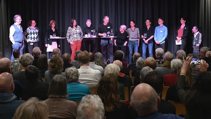 Im voll besetzten Auditorium des Basler SRF-Studios diskutieren Nicole Probst-Hensch, Epidemiologin am Schweizerischen Tropen- und Public Health Institut, Mark Eisenegger, Medienforscher an der Universität Zürich und Andrea Fischli, publizistische Leiterin der SRF-Wissenschaftsredaktion.