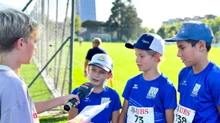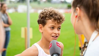 Ob Kinderreporter Tim aufgeregt war, als er am UBS Kids Cup Topathletin Mujinga Kambundji interviewte?