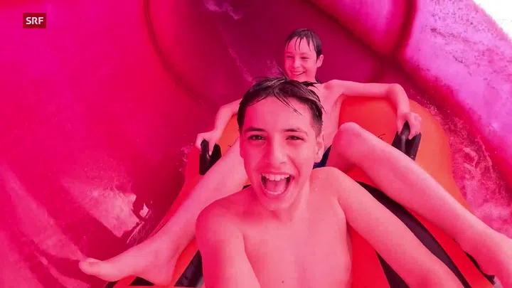 Für unsere Beiträge bei SRF Kids wollen wir aber nicht nur rutschen, sondern auch hinter die Kulissen schauen. Wie bleibt das Wasser in einem grossen Wasserpark den ganzen Tag sauber? Und wie viel Technik steckt hinter den Bädern und Bahnen?