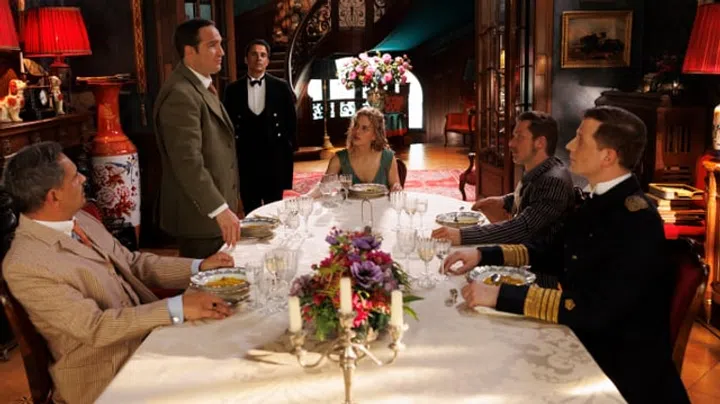 Tatsächlich bemüht sich die Serie aber nur zu Beginn, Verbindungen zur Vorlage herzustellen: Keine fünf Minuten vergehen, bis ein Butler über einen Tigerkopf stolpert, kurz darauf fallen die Namen Sir Toby, Admiral von Schneider, Mr. Pommeroy und Mr. Winterbottom ein erstes Mal – jene vier Gäste, die Miss Sophie überlebt, Jahrzehnte später aber trotzdem immer wieder zu ihrem Geburtstag eingeladen werden.