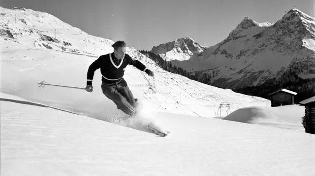 Bild 4 von 4. Die niederländische Königin Juliana und ihr Mann Prinz Bernhard zur Lippe-Biesterfeld fahren im Februar 1959 in Gstaad im Kanton Bern Ski. Bildquelle: KEYSTONE/PHOTOPRESS-ARCHIV/Wi.