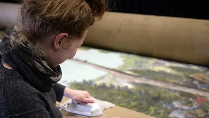 Die Farbe hebt sich von der flachen Leinwand ab und schafft einen dreidimensionalen Effekt. Das zeige, dass das Panorama schon damals kein rein zweidimensionales Werk gewesen sei.
