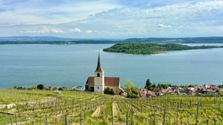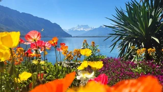 Gelb-Grün-Blau hier mit herrlicher Sicht auf Alpengipfel der Zentralschweiz.