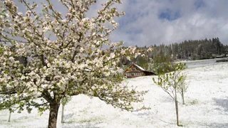 Das sonnige Wetter lockt nach draussen. Das letzte April-Wochenende bietet viele Gelb-Grün-Blau-Kompositionen: Gelber Raps, grüne Wiesen, blauer Himmel. Von Affoltern im Emmental/BE aus ergibt sich zudem ein wunderbarer Blick auf Eiger, Mönch und Jungfrau.