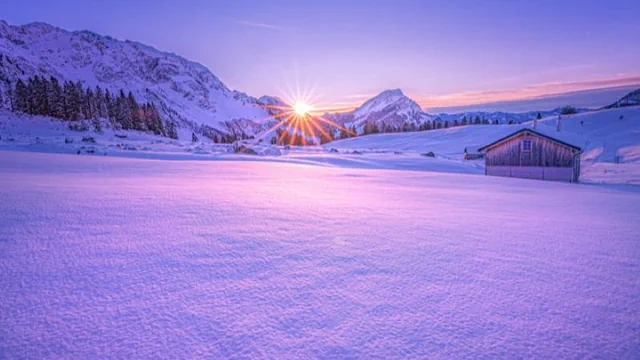 Bild 4 von 6. Schwägalp/AR. 7. Januar: Sonnuntergang auf der Schwägalp mit warmem Licht über der verschneiten Winterlandschaft. Bildquelle: René Schwaninger.