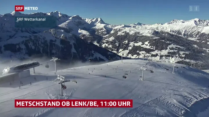 Aktuell sorgt das Hochdruckwetter in der Höhe für sehr trockene Luft. Die Fernsicht auf den Skipisten ist ausgezeichnet. Die relative Luftfeuchtigkeit auf den Gipfeln liegt im tiefen einstelligen Bereich. In den unteren Luftschichten ist noch mehr Feuchtigkeit vorhanden, teilweise in Form von Nebel- und Hochnebelfeldern.