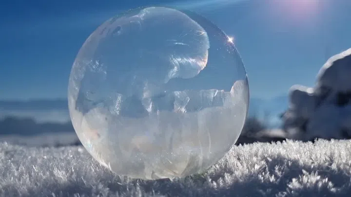 Bild 1 von 8. Ammerzwil/BE. Tipp für kalte Nächte: Gefrorene Seifenblasen verwandeln sich in zerbrechliche Kugeln voller Eisblumen. Bildquelle: Sarah Rappo.