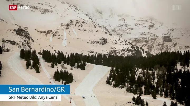 Bild 1 von 21. Disentis/GR . Saharastaub auf der Piste. Bildquelle: Franziska Eberle.
