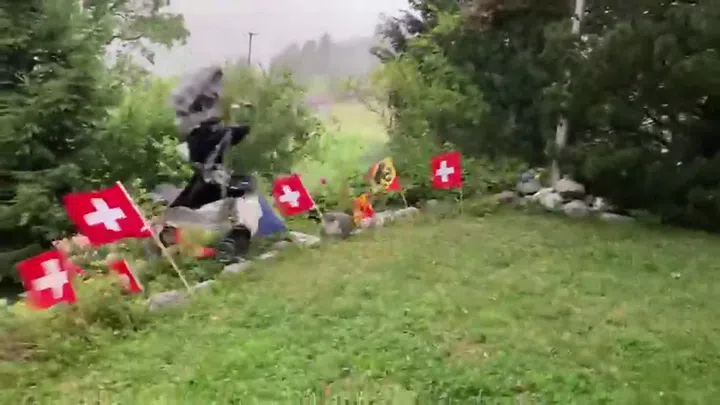 So hat sich Fabian Erismann die 1. August-Feier wahrscheinlich nicht vorgestellt: Die Fähnchen halten den Gewitterböen noch stand, aber dann verabschiedet sich der (leere) Buggy. Dafür gibt es von uns den Titel Wettervideo der Woche. Dazu finden Sie in der Galerie weitere tolle Videos von Blitzen, einem Nebelfall und einem aufziehenden Schauer. Vielen Dank für alle eingesendeten SRFMeteo-Videos!