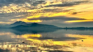 Am Mittwochmorgen war der Himmel nicht nur prächtig rot, sondern zeigte auch den Schatten einiger Berge.
