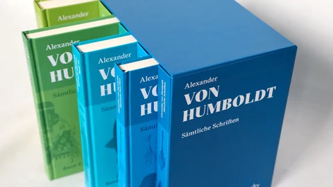 Bild 4 von 4. Zum 250. Geburtstag erscheinen erstmals alle gesammelten Schriften von Alexander von Humboldt. Die Sammlung wurde von Forschern der Universität Bern zusammengestellt und bildet Hunderte Aufsätze, Artikel und Essays ab, die Humboldt in 70 Jahren in Zeitschriften und Zeitungen veröffentlicht hat. Bildquelle: Heike Bogenbeger/dtv.