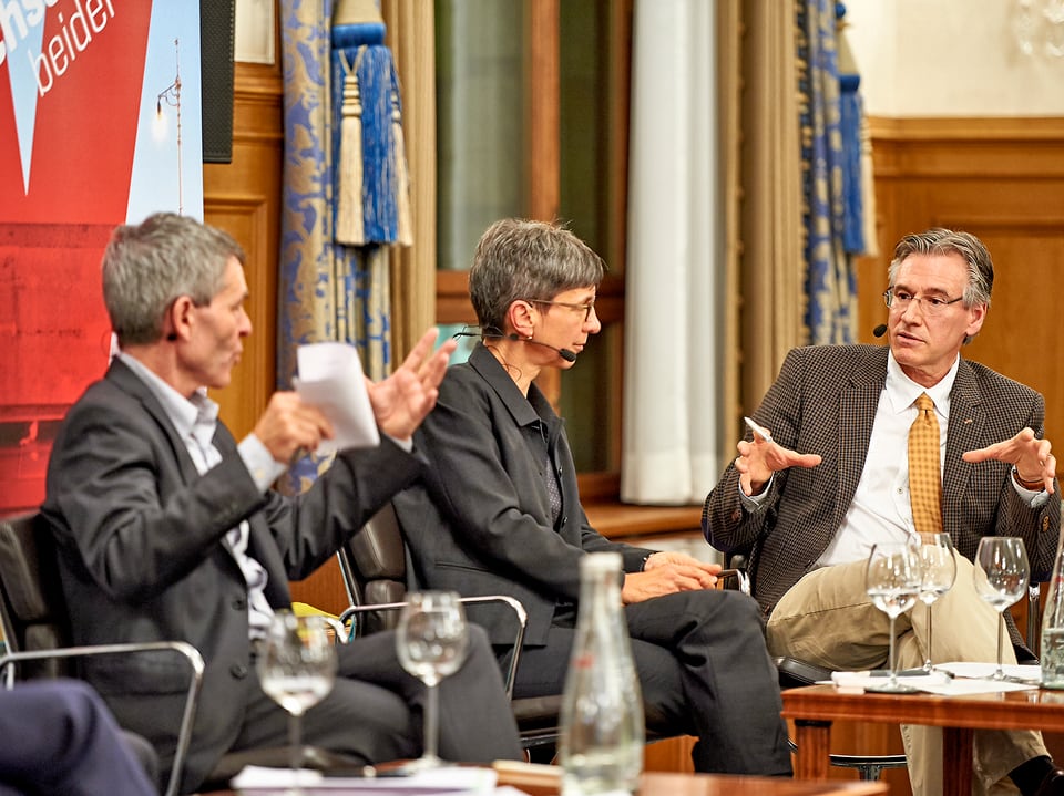 Am Stadtgespräch des Regionaljournal Basel und der Volkshochschule beider Basel zeigte sich ein seltenes Bild: Zwei Regierungsräte aus den beiden Basel zogen am selben Strick. Sowohl der Basler Gesundheitsdirektor, Lukas Engelberger (CVP), als auch sein Baselbieter Amtskollege Thomas Weber (SVP) setzten sich für die gemeinsamen Pläne ein. Sie wollen ihre Spitäler zusammenlegen.