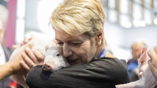Ein Schweinchen wird auf Händen getragen und Dinosaurier treiben in Lausanne ihr Unwesen: Das sind die Fotos der Woche.