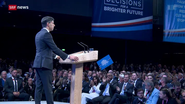 Am Parteikongress in Manchester versucht Sunak, die Konservativen auf einen harten Wahlkampf einzuschwören, verspricht auch Verbesserungen – will heissen: mehr Geld – für Gesundheit, Bildung, Sicherheit und die Abwehr von Bootsflüchtlingen.