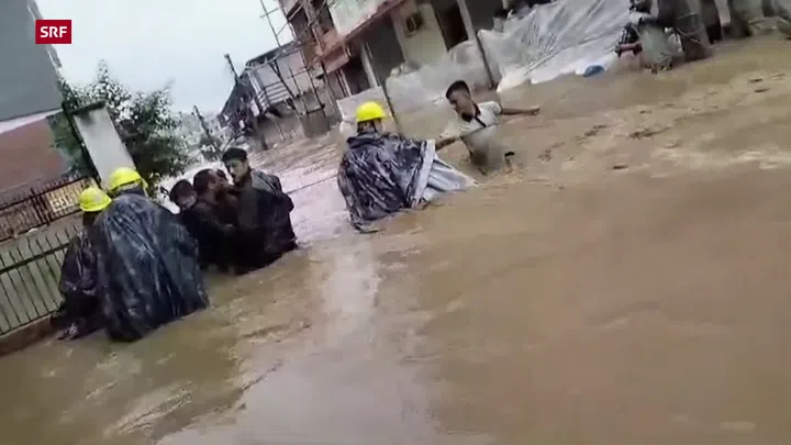 In den vergangenen Tagen hatte es in der Himalaya-Republik so viel geregnet wie seit Jahrzehnten nicht mehr. Seit Sonntag bessert sich das Wetter. Die Monsunzeit hat im Juni begonnen und endet normalerweise Mitte September.