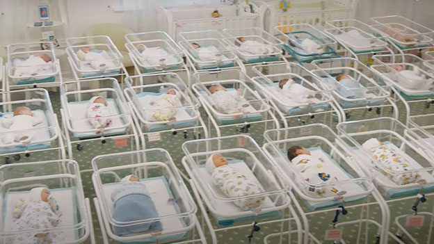 «Wir haben 46 Kinder in unserem Hotel, erst gestern wurden wieder vier aus der Geburtsklinik gebracht», sagt eine Pflegerin in die Kamera. «Die Eltern der Babys stammen aus den USA, Italien, Spanien, Deutschland oder China.»