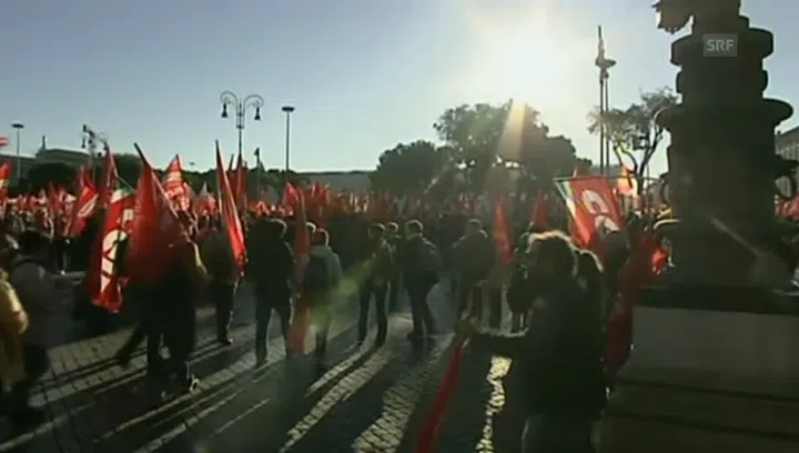 «Arbeit, Würde und Gleichberechtigung» lautete der Slogan der Demonstration, an der sich auch viele Jugendliche beteiligten. «Wir verlangen Investitionen in die Zukunft», rief einer der Protestführer. Die junge Generation werde sich nicht mit der unsicheren Arbeitssituation abfinden.