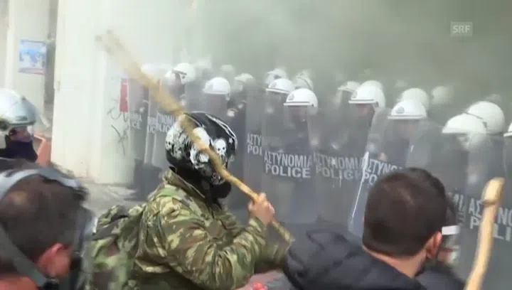 Aus Wut über eine geplante Renten- und Steuerreform versuchten wütende Landwirte aus Kreta, das Landwirtschaftsministerium in Athen zu besetzen. Dabei gingen sie direkt auf Polizisten los, die das Gebäude abschirmten.