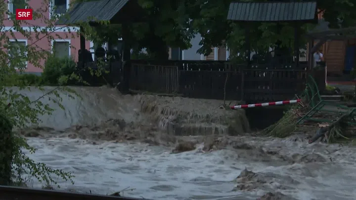 Nach schweren Regenfällen hatte sich am Samstag der durch den Ort fliessende Übelbach in einen reissenden Strom verwandelt. Nach Angaben von Meteorologen waren binnen kurzer Zeit regional mehr als 100 Liter Regen auf den Quadratmeter gefallen. In einem Schulzentrum hat das Rote Kreuz eine Notanlaufstelle für die Grundversorgung eingerichtet.