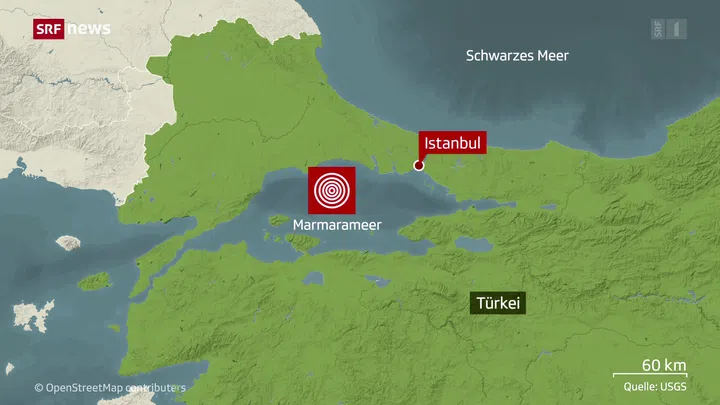 Istanbul wurde am Mittwoch von mehreren Erdbeben erschüttert. Um 12:49 Uhr Ortszeit registrierte der Katastrophendienst Afad das bislang stärkste Beben der Stärke 6.2 mit einem Epizentrum im vor der Stadt gelegenen Marmarameer.