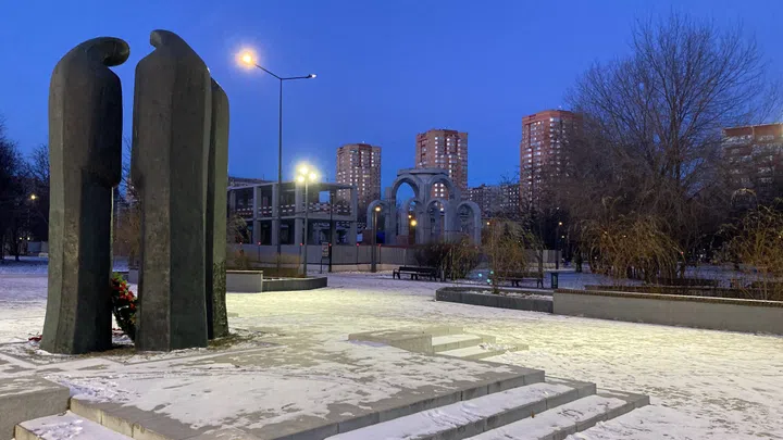 Die Baustelle liegt nur wenige Meter neben einer Skulptur: Drei Frauen mit gesenkten Häuptern, zu ihren Füssen liegen frische Blumen. Es ist ein Mahnmal für die Moskauer, die im sowjetischen Afghanistan-Krieg der 1980er-Jahre gefallen sind.