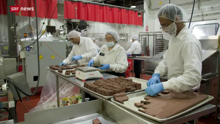 Bild 4 von 4. Die klassischen Brownies machen nur einen kleinen Teil der Produktion aus. Der grösste Teil wird in kleinen Stücken anBen & Jerry's geliefert, die sie für ihre Glacé-Sorte Chocolate Fudge Brownie verwendet. Bildquelle: SRF / Viviane Manz.