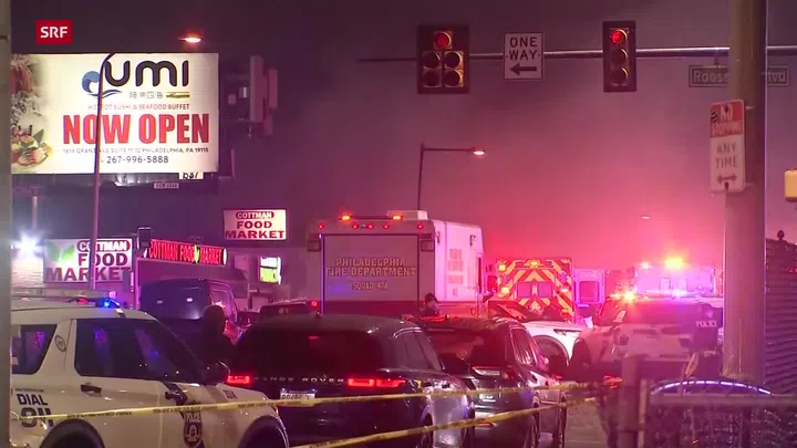 Der Absturzort: Auf Bildern, die mehrere US-Fernsehsender verbreiteten, waren dramatische Szenen zu sehen: eine gewaltige Explosion, ein Feuerball und grosse Rauchschwaden – und das mitten in einem Gebiet im Nordosten Philadelphias mit einer grossen Ansammlung von Läden und viel befahrenen Strassen im Feierabendverkehr. Das Gebiet wurde grossräumig abgesperrt, Einwohnerinnen und Einwohner wurden aufgerufen, die Gegend zu meiden.