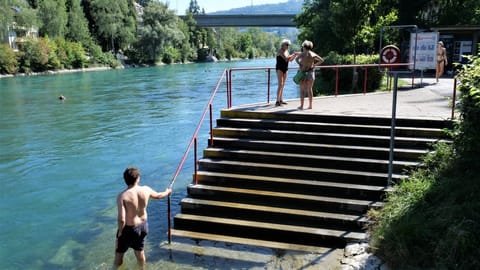 Fussballfans bemalten alle Aare-Einstiege in Bern gelbschwarz. Die vielen Leute in der Aare setzen den «YB-Stägli» zu.