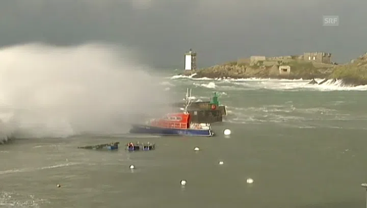 Für Teile der Bretagne galt ebenfalls die höchste Flut-Alarmstufe Rot. Fährverbindungen zu einigen Inseln mussten eingestellt werden.